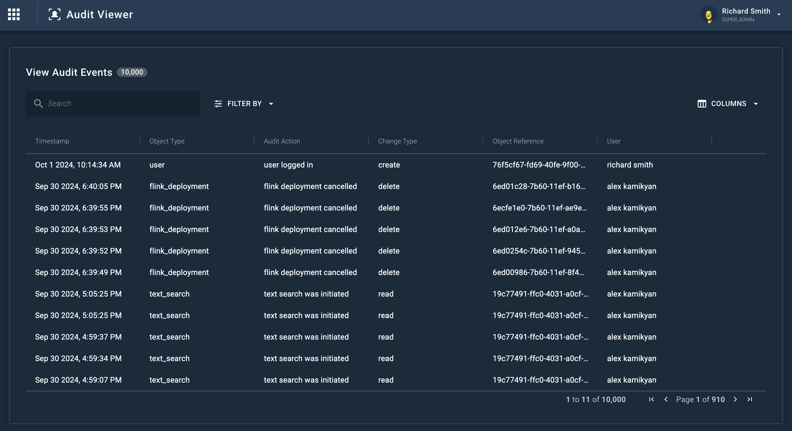 View a historical audit log of user actions in Cogynt.ai applications from the last 90 days.